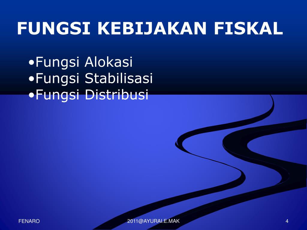 Dari kebijakan fiskal itu adalah fungsi alokasi, distribusi, dan stabilisasi.