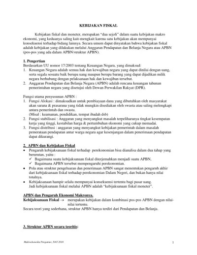 Pdf | kebijakan fiskal berarti kebijakan untuk mengatur pendapatan dan pengeluaran negara dalam rangka menjaga stabilitas dan mendorong pertumbuhan.