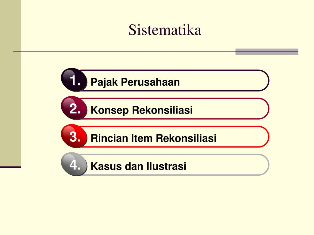 Rekonsiliasi Fiskal Ppt. Unduh sebagai ppt, pdf, txt atau baca online dari scribd. Rekonsilias i fiskal disusun oleh : Bagaimanakah rekonsiliasi fiskal ditetapkan atas pt. 42 jasa konstruksi a pelaksanaan konstruksi pph final pasal . Mendeskripsikan hasil perhitungan rekonsiliasi (koreksi) fiskal terhadap laporan keuangan perusahaan berupa laporan laba/ rugi dan menghitung besarnya laba .
